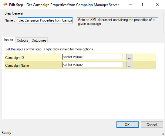 Fig. 1 - Get Campaign Properties from Campaign Manager Server - Inputs