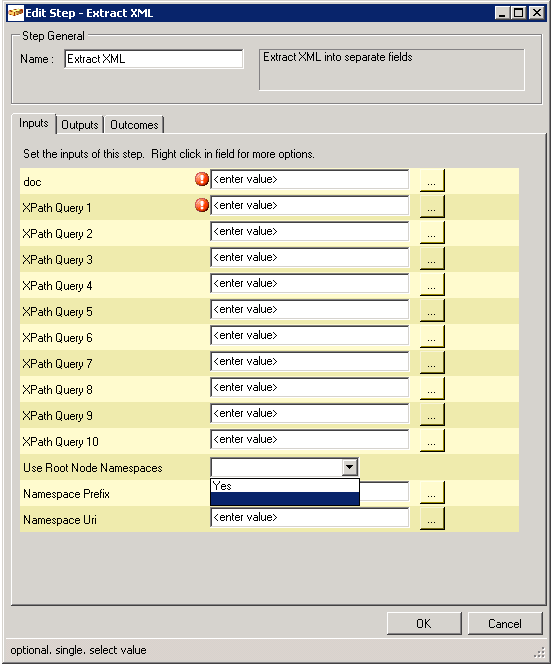 | 5. | Namespace Prefix | (Optional) | A namespace prefix - use together with Namespace Uri, so that it can be used in XPath queries |
