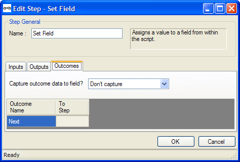 | 1. | Value | (Mandatory) | The Campaign or Script field that should receive the Input value. Fig. 2 shows the Script field SalesMadeAgent being assigned as the Output value. |