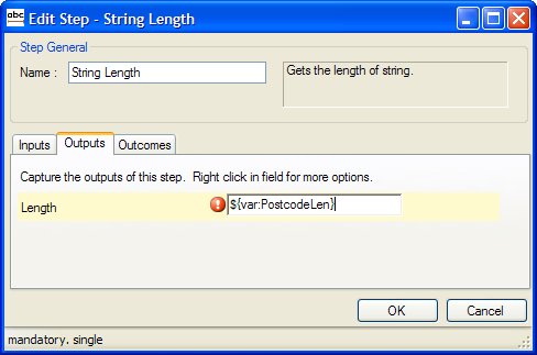 | 1. | Length | The length of the Input String. In this example, the value is captured to the Script variable PostcodeLen (Fig. 2). |