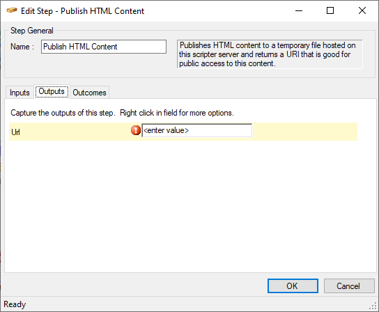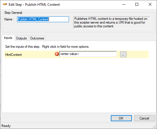 Publishes HTML content to a temporary file hosted on this scripter server and returns a URI that is good for public access to this content.