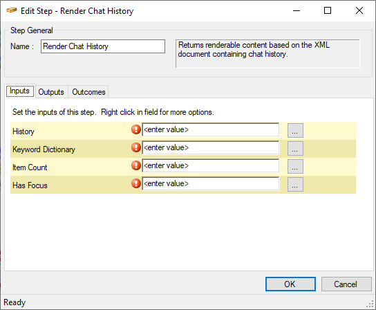 | 4. | Has Focus | (Mandatory) | Whether the current chat session has focus. This should be set from the value of the system variable HasFocus. |